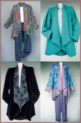 Sizes: XS, S, M, L, XL, XXL • Dress up any outfit with this versatile jacket - created to fascinate! • Mix up n' down with back n' forth stripe, use 2 complementary fabrics or make all from one fabric • Slimming inverted back pleat • Pockets in side seam • Easy construction = quick assembly • Let your mind create!
